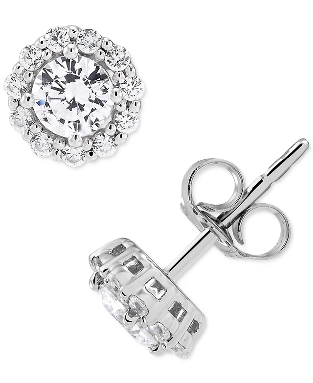 Amethyst (1-1/2 ct. t.w.) & Diamond (1/5 Halo Stud Earrings Sterling Silver (Also Citrine, Garnet, Peridot, Blue Topaz)