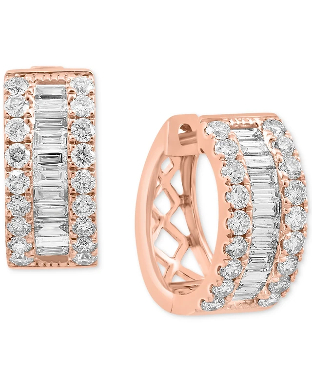 Effy Diamond Round & Baguette Twist Style Small Hoop Earrings (1-1/6 ct. t.w.) in 14k White Gold, 0.6"