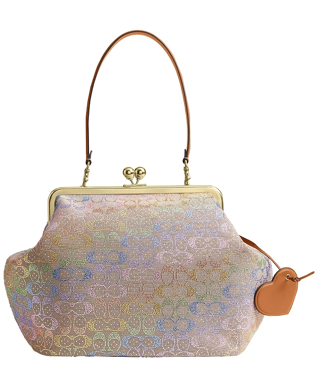 Coach Crystal Signature Jacquard Kisslock Frame Medium Shoulder Bag