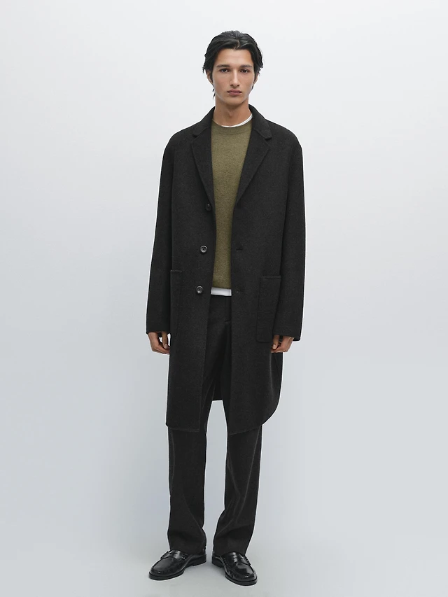 Long 100% wool coat with notch lapel - LIMITED
