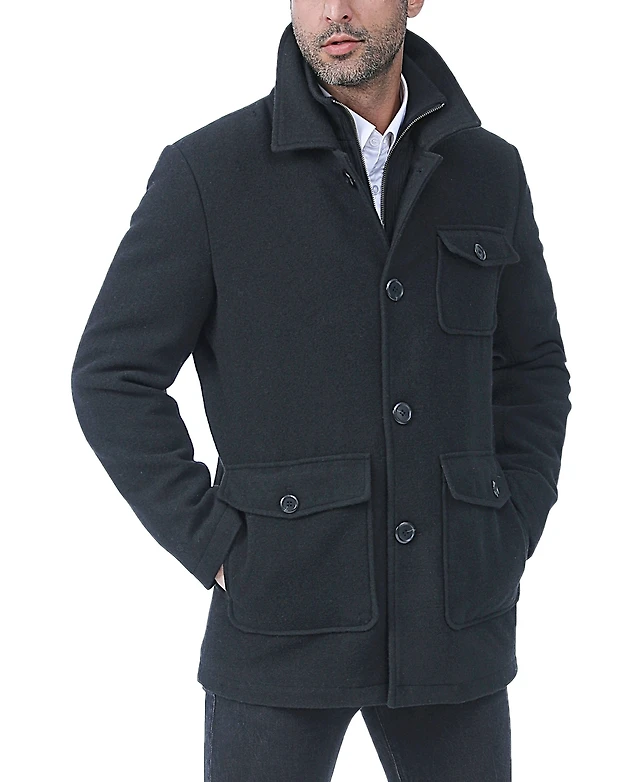 Kenneth Cole Men's Water-Resistant Hooded Stadium Coat with Removable Puffer Bib
