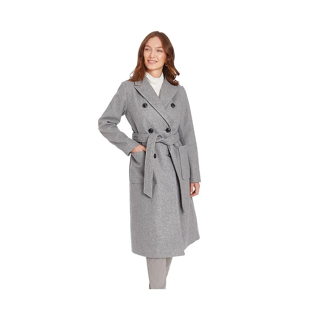Julia & Stella by Maximilian Women's Wool Wrap Coat With Shearling Trim