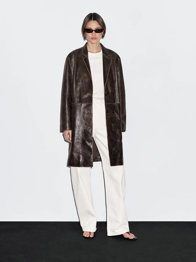 Distressed nappa leather coat