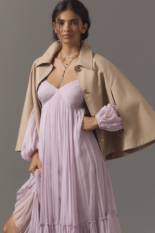 Ann Taylor Petite Removable Cape Trench Coat Cafe Au Lait Women's