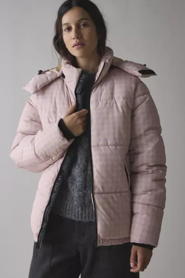The Very Warm Pink Gingham Check Hooded Puffer Coat