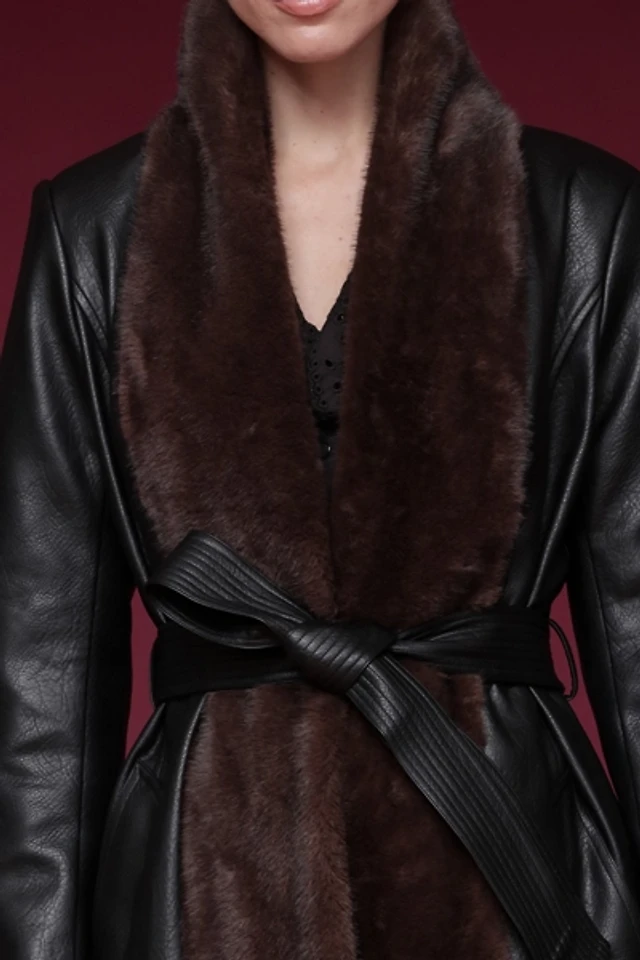 Nasty Gal Women's Belted Tipped Faux Fur Coat