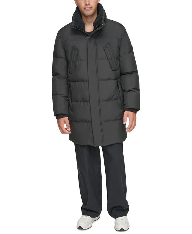 Dkny Men's Tufted-Chenille Logo Applique Long Hooded Stadium Coat
