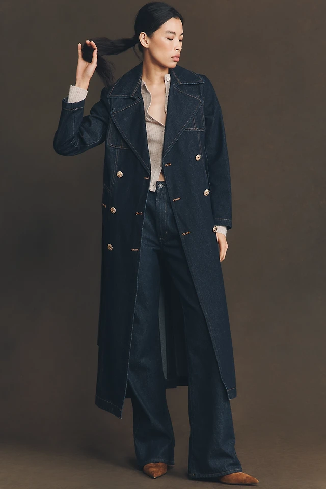 Jendue Women's Chaby Denim Jacket Trench Coat Long