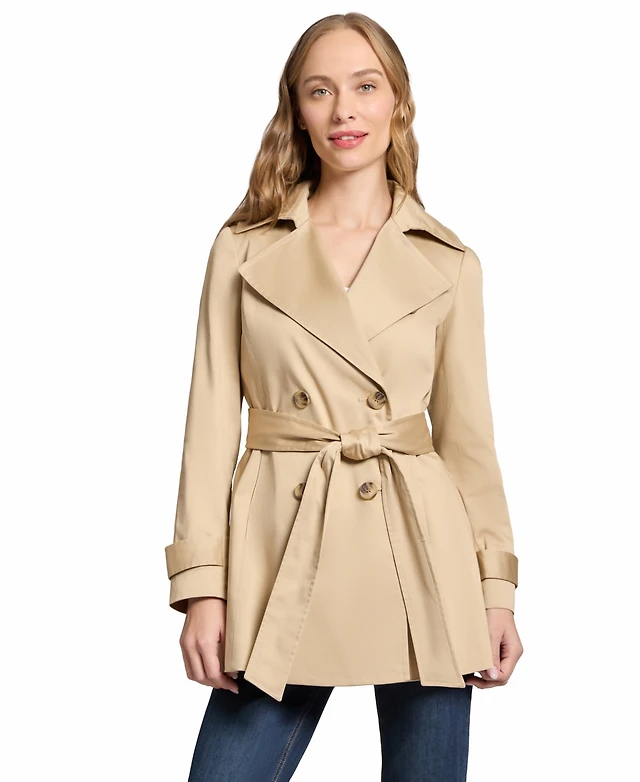 Soia & Kyo Womens Fabiola Relaxed-Fit Double-Breated Trench Coat With Adjustable Waist