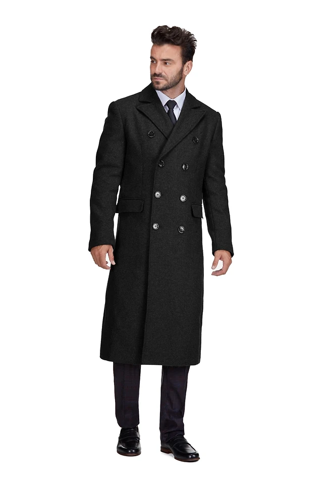 Braveman Men's Double-Breasted Knee Length Wool Blend Three Button Long Overcoat Top Coat