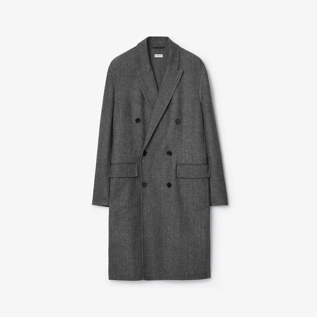 Herringbone Wool Tailored Coat in Lead grey melange - Men | Burberry® Official