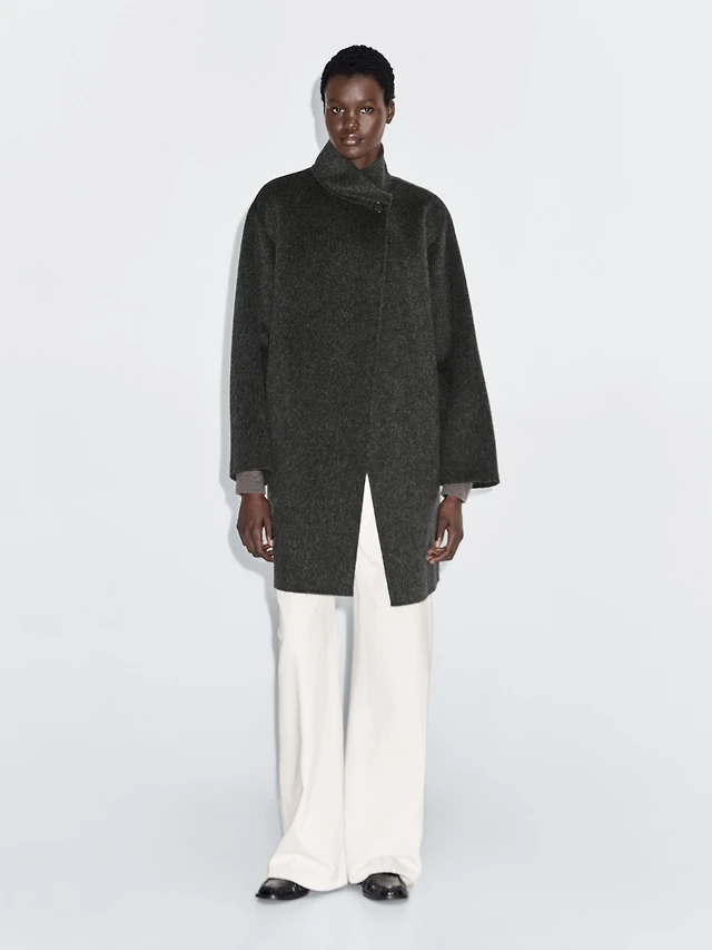 Short wool blend jacket with shirt collar
