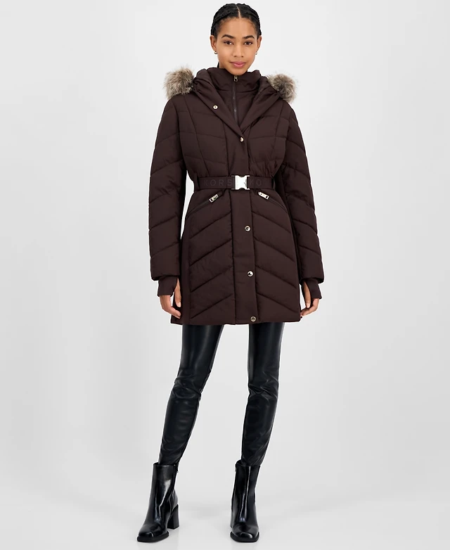 Azalea Wang Telluride Longline Patchwork Faux Fur Trim Coat