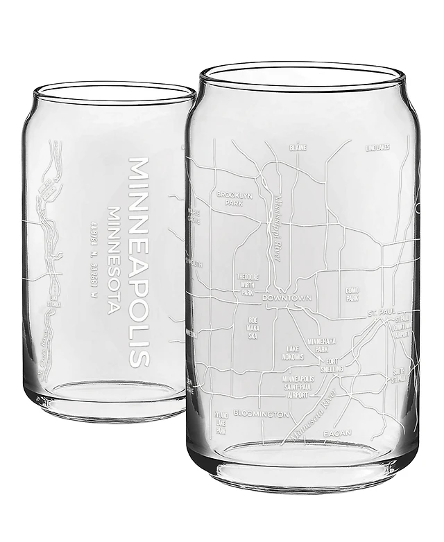 Narbo The Can New York City Map 16 oz Everyday Glassware, Set of 2