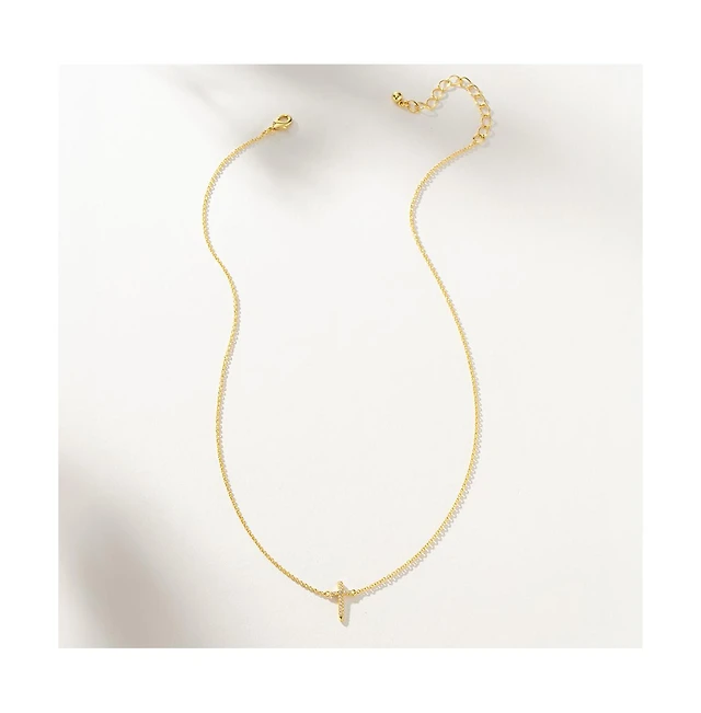 14K Gold-Plated Simple Cross Necklace, 14" + 2" extender