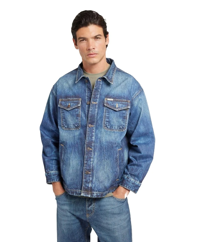 True Religion Men's Oversize Super-t Coated Button-Up Jacket