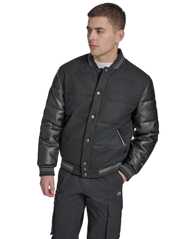Champion Men's Mixed-Media Varsity Bomber Jacket