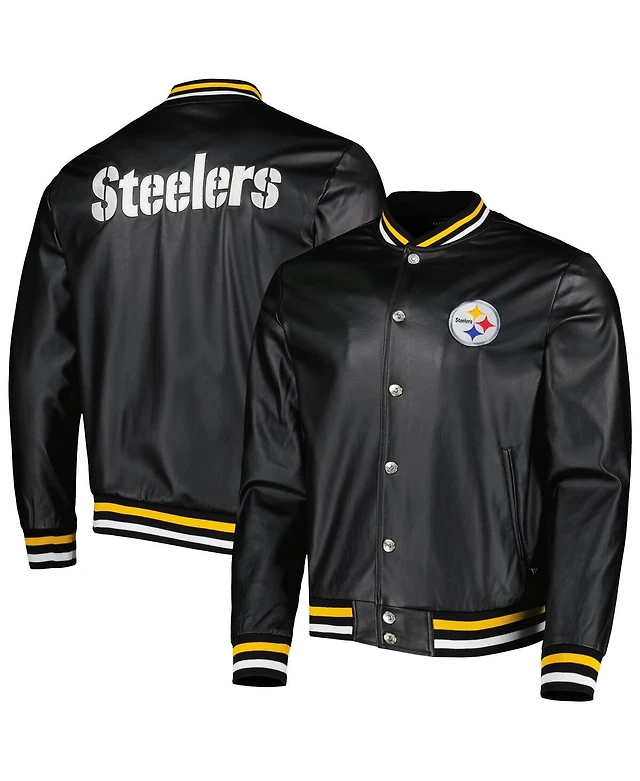 Men's The Wild Collective Black Pittsburgh Steelers Metallic Bomber Full-Snap Jacket