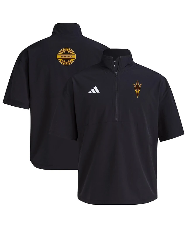 Men's Nike Black Las Vegas Raiders Sideline Coach Short Sleeve Hoodie Quarter-Zip Jacket