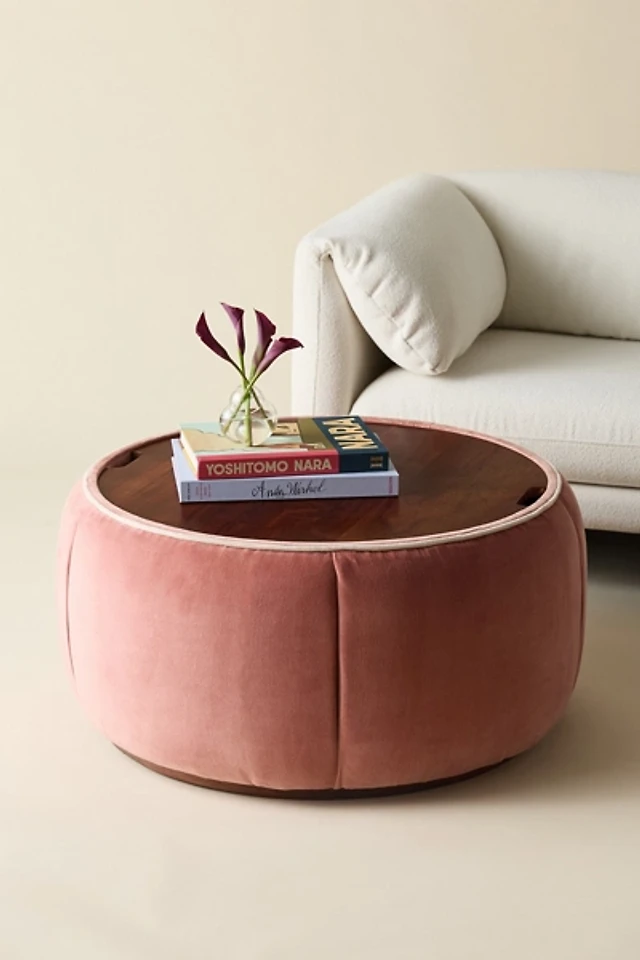 Streamdale Furniture Upholstered Round Ottoman Coffee Table with Storage