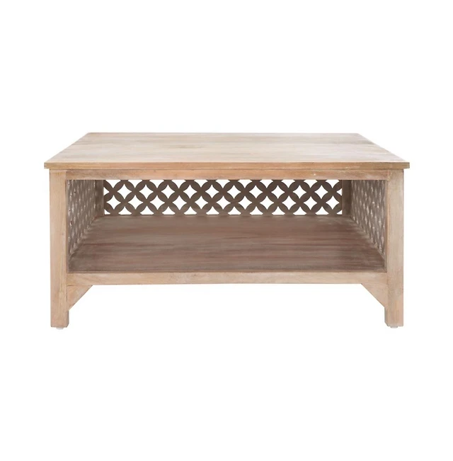Alaterre Furniture Claremont Rustic Wood Coffee Table with Low Shelf