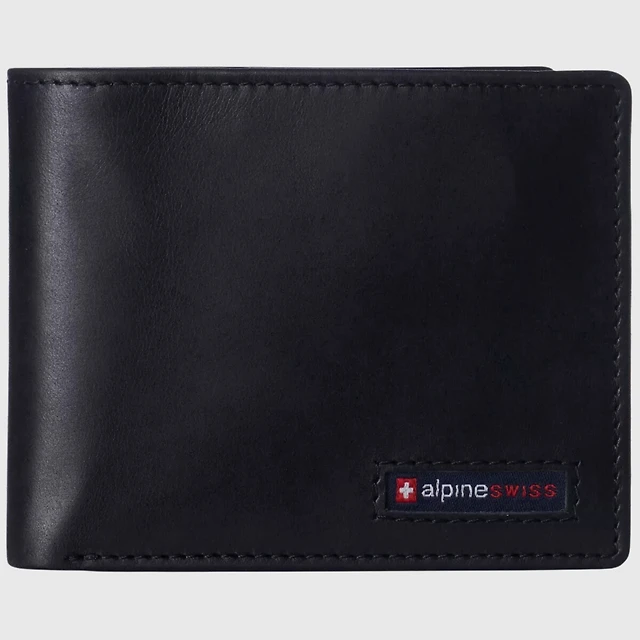 Alpine Swiss Mens Genuine Leather Rfid Safe Bifold Wallet Passcase 2 Id Windows