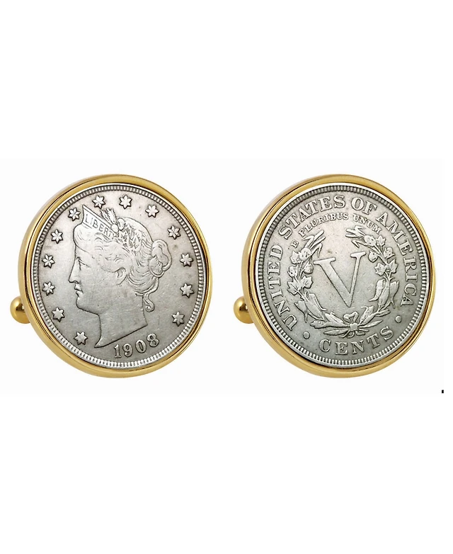 American Coin Treasures Gold-Layered Liberty Nickel Bezel Coin Cuff Links
