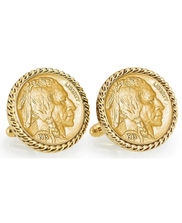 American Coin Treasures Gold-Layered 1859 First-Year-Of-Issue Indian Head Penny Rope Bezel Coin Cuff Links