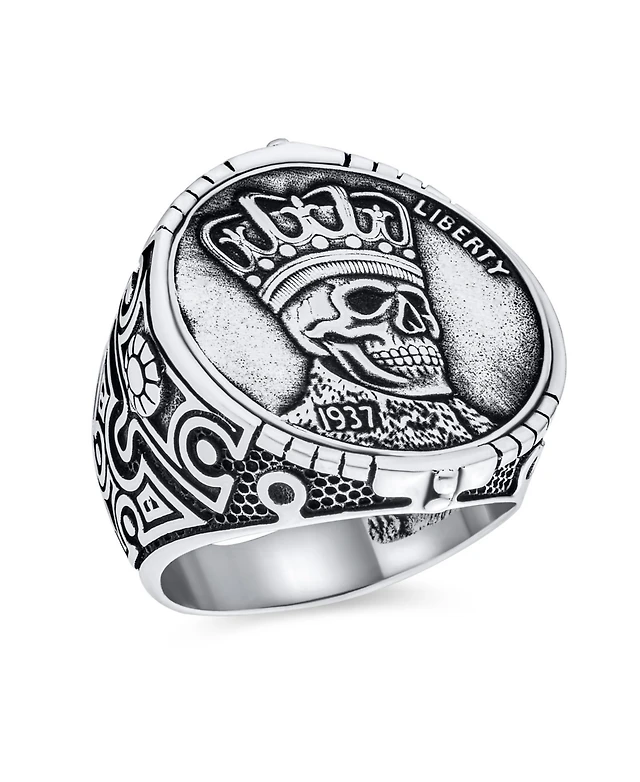 Bling Jewelry Statement Eagle Head Liberty 1937 Coin Novelty as Biker Gothic Crown Skull Ring Oxidized Sterling Silver