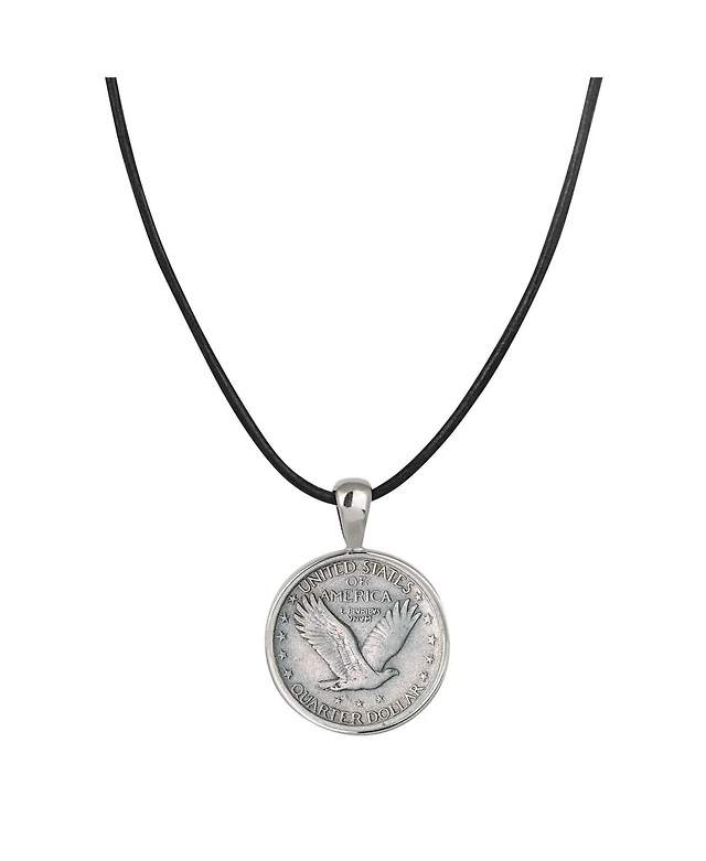 American Coin Treasures 16370 Standing Liberty Silver Quarter Pendant with Leather Cord for Men - Reverse
