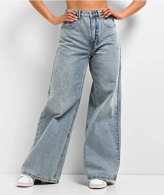 Empyre Tori Light Blue Blossom Wash Wide Leg Skate Jeans