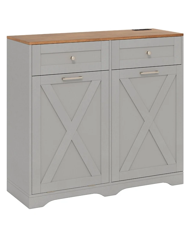 Sugift Tilt Out Trash Can Cabinet with Power Outlets and Shelf