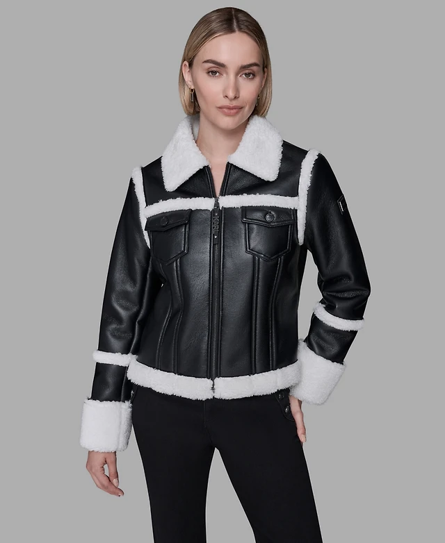Lauren Ralph Women's Fleece-Collar Faux-Leather Jacket