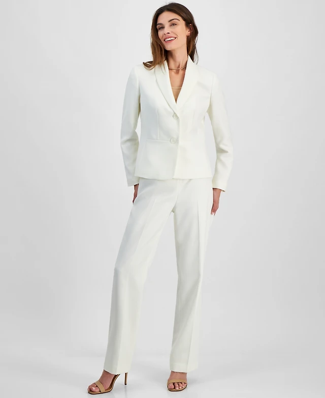 Le Suit Women's Shawl-Collar One-Button Jacket & Pull-On Straight-Leg Pants Set