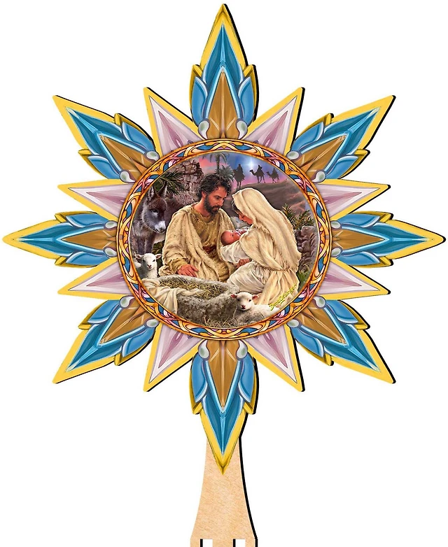 Designocracy Classic Nativity Wooden Tree Topper