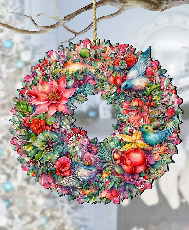 Designocracy Holiday Wooden Ornaments Summer Blooms Wreath Home Decor G. DeBrekht