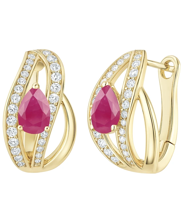 Macy's Lab-Grown Ruby (1/6 ct. t.w.) & White Sapphire (1/2 Earring 14k Gold Over Sterling Silver (also Emerald Sapphire)