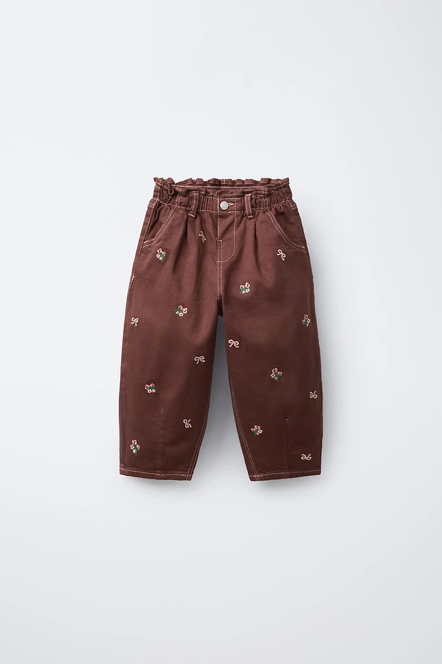 EMBROIDERED FLORAL TWILL BALLOON PANTS