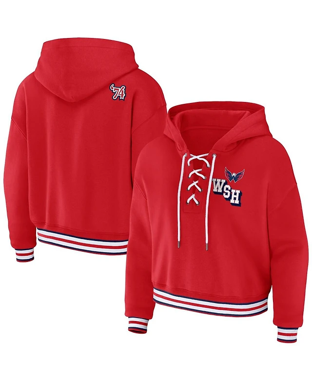Women's Wear by Erin Andrews Red Washington Capitals Lace-Up Pullover Hoodie