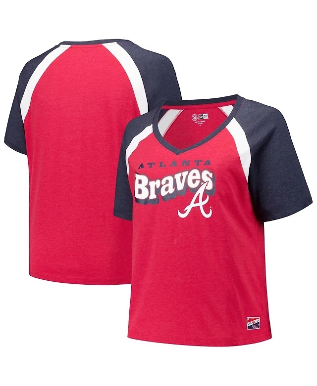 New Era Women's Red Atlanta Braves Plus Raglan V-Neck T-Shirt