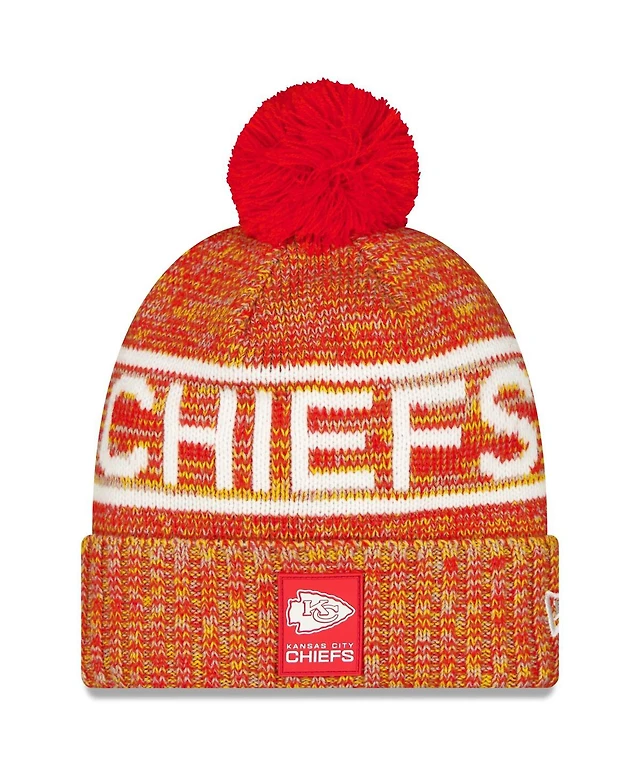 Men's New Era Red Toronto Raptors Striped Cuffed Pom Knit Hat