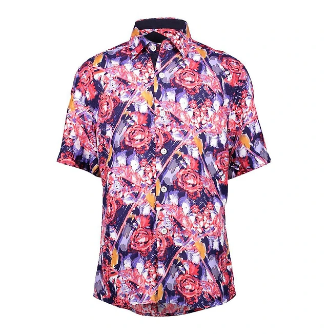 Elie Balleh Big Boys Red Paint Splash Slim Fit Short Sleeve Shirt