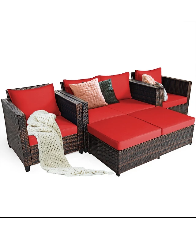 Gymax 5PCS Outdoor Patio Rattan Conversation Sofa Furniture Set w/ Cushions