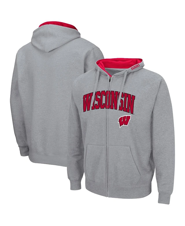 Men's Colosseum Heathered Gray Wisconsin Badgers Arch and Logo 3.0 Full-Zip Hoodie