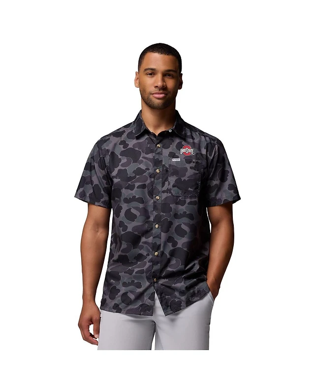 Columbia Men's Black Ohio State Buckeyes Super Slack Tide Omni-Wick Button-Up Shirt
