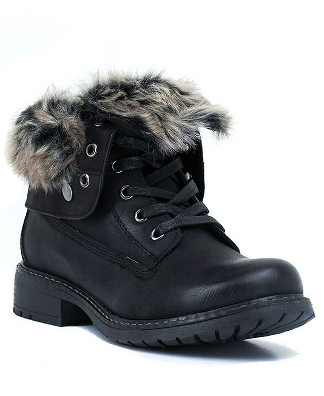 Gc Shoes Women's Trudie Faux Fur Collar Lace Up Combat Booties
