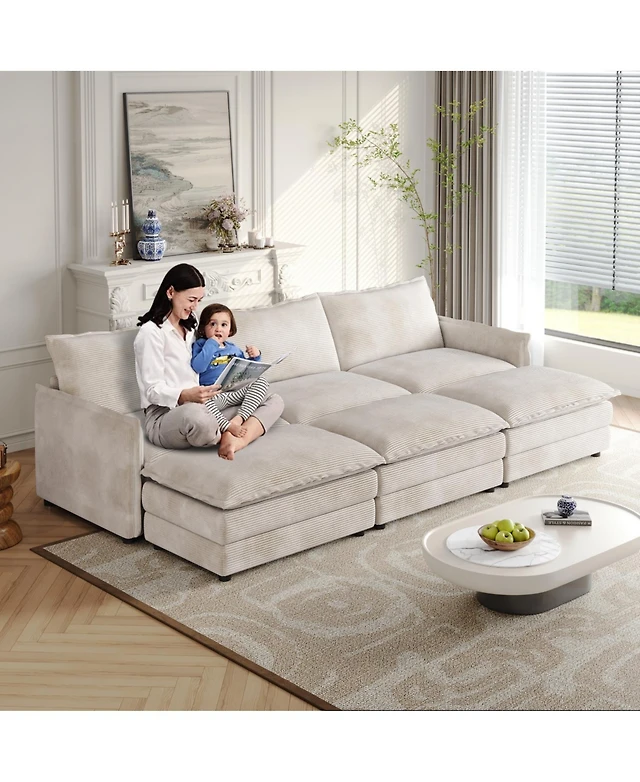 Streamdale Furniture Corduroy Sectional Sofa with Ottoman