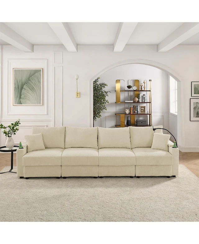 Streamdale Plush Corduroy 4-Seat Sofa with Ottomans - Beige