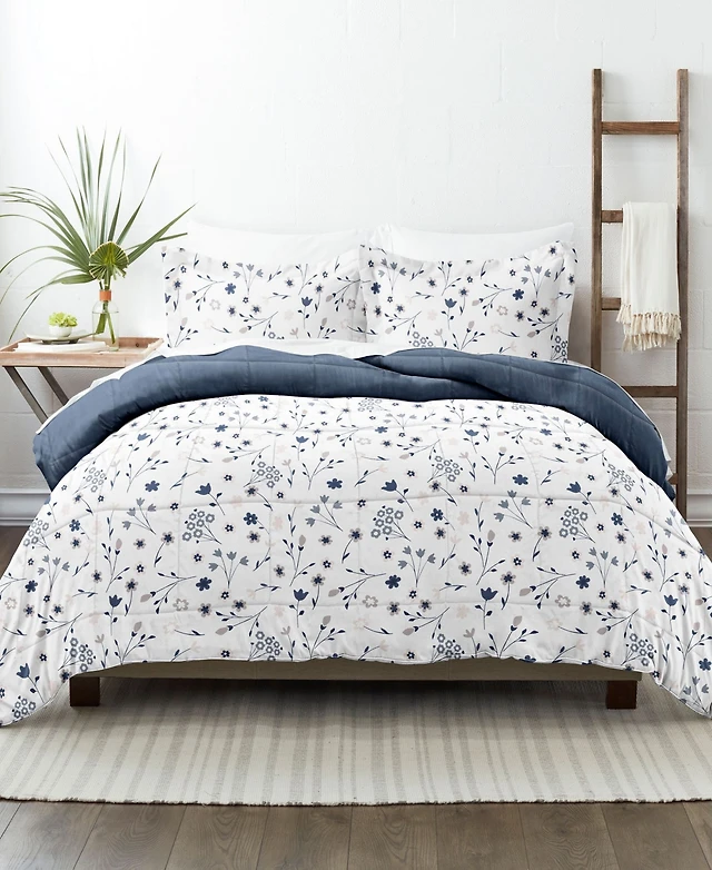 ienjoy Home Meadow Floral Stripe 3-Piece Comforter Set, Full/Queen