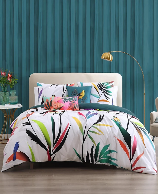 Bebejan Botanical Birds Bedding 200 Thread Count 100% Cotton Sateen 5 Piece Queen Size Reversible Comforter Set